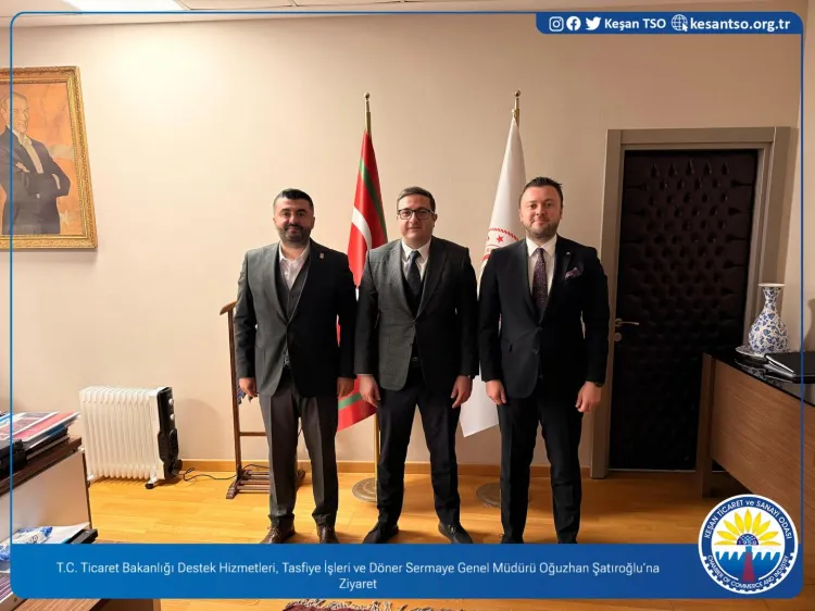 Edirne'de Keşan Ticaret ve Sanayi Odası yönetimi, Keşan Kaymakamı Aziz Mercan ile birlikte T.C. Ticaret Bakanlığı bünyesindeki üst düzey yöneticileri ziyaret ederek ticaret, gümrük işlemleri, sınır kapıları ve bölge ekonomisine yönelik konularda görüş alışverişinde bulundu.