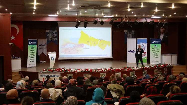 KOCAELİ (İGFA) - Kocaeli Üniversitesi, Kocaeli İl Afet ve Acil Durum Müdürlüğü, Çayırova Belediyesi ve Büyükşehir Belediyesi İmar ve Şehircilik Dairesi Başkanlığı Zemin ve Deprem İnceleme Şube Müdürlüğü tarafından ortaklaşa düzenlenen "Kocaeli Mahalle Halkı Afetlere Hazırlık Eğitim Projesi" kapsamında Çayırova'da 2 günlük eğitim gerçekleştirildi.