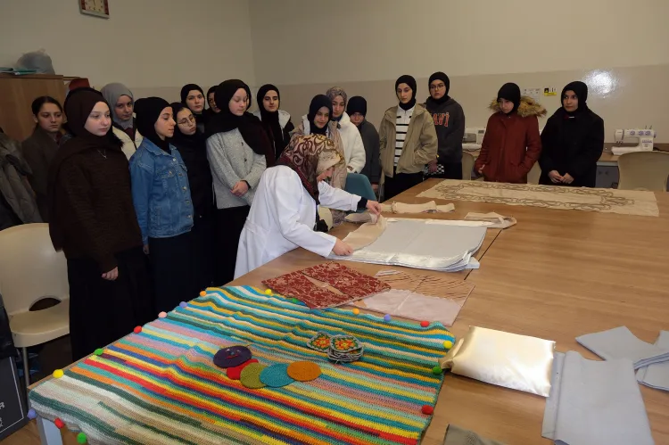 Ziyaret kapsamında iğne oyası ve çeyiz branşlarını da gezen öğrenciler, SAMEK'lerde sunulan eğitim içeriklerini yerinde görme imkânı elde etti.