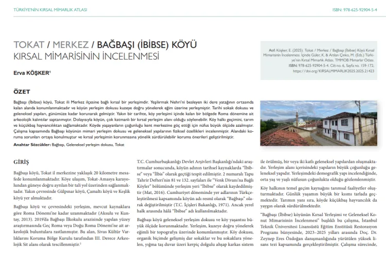 Tokat Haber / TOKAT (İGFA) - Tokat'ın Merkez ilçesine bağlı Bağbaşı Köyü, İstanbul'da yaşayan Mimar Erva Köşker Avcı'nın yüksek lisans tezinde kapsamlı bir şekilde incelendi. "Kırsal Mimarisinin İncelenmesi" başlıklı tez çalışmasında köyün mimari yerleşim dokusu, geleneksel yapıları ve tarihsel özellikleri bilimsel olarak değerlendirildi.