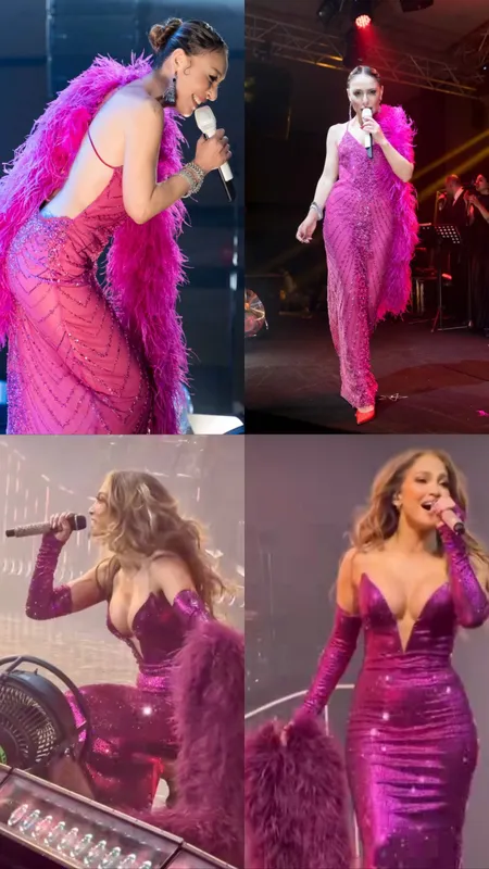 Aynı renk sahne kostümü tercih eden Ziynet Sali ve Jennifer Lopez, üstelik aynı peluş aksesuarı kullanınca ortaya tam anlamıyla yılbaşı gecesine yakışır bir "pişti" çıktı.