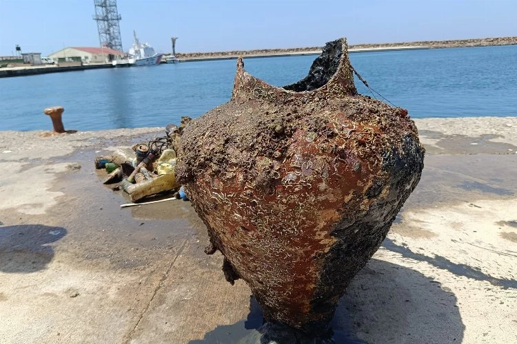 Temizlik sırasında Dalgıç Ahmet Uz tarafından bulunan amfora, Sahil Güvenlik Botu aracılığı ile dışarıya alındı.  Yapılan çalışamlarda lastik, pet, şişe ve atık malzemeler bulundu.