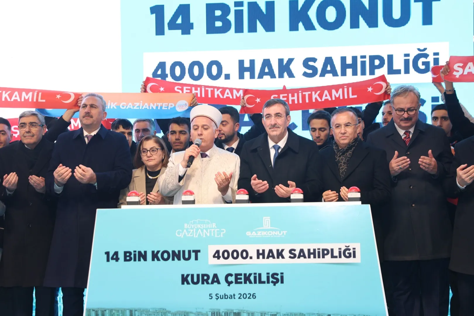 Cumhurbaşkanı Yardımcısı Cevdet Yılmaz, kura töreninde deprem şehitlerini rahmetle anarak yaraların sarılması için büyük gayret gösterdiklerini söyledi. Deprem sonrası kamu bütçesinden 90 milyar TL harcama yapıldığını belirten Yılmaz, “455 bin konutu teslim ettik. Gaziantep’te 25 bin 237 konut, 4 bin 463 köy evi, 1.353 iş yeri hak sahiplerine verildi. Gaziantep en hızlı toparlanan ilimiz oldu. Bu tesadüf değil, Gaziantep Modeli sayesinde” dedi.