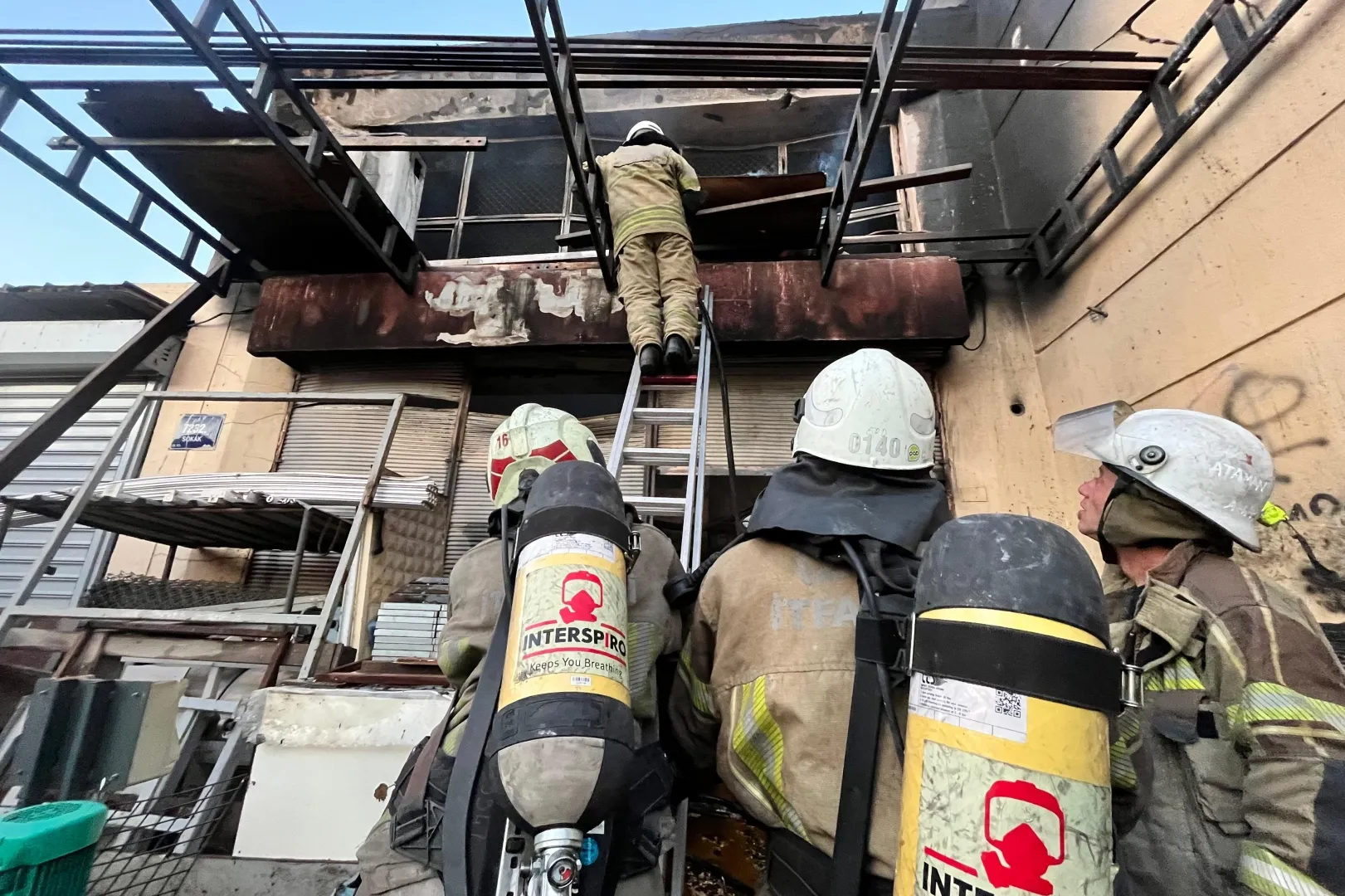 Yangının çevrede bulunan diğer iş yerlerine sıçraması önlenirken, bölgede soğutma çalışmaları devam ediyor.