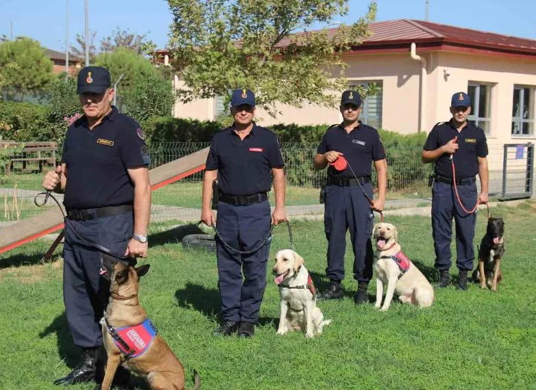 Aydın İl Jandarma Komutanlığı’nda görev yapan köpeklerin, yetiştirilmesi ve eğitim süreçlerinden bahseden Yangın Tespit Köpek Eğitmeni Uzman Jandarma Çavuş Zafer Demirci, “Aydın İl Jandarma Komutanlığı’nda görev yapan köpekler Nevşehir ilinde konuşlu Jandarma At ve Köpek Eğitim Merkez Komutanlığı’nda (JAKEM) eğiticisi rütbeli personel ile birlikte uyum sağlayacak biçimde yetiştirilip aynı eğiticisi personel ile birlikte görev yerlerine sevk edilmektedir. JAKEM Komutanlığı bünyesine yeni katılan 1 yaşını tamamlamış eğitime yatkın köpekler yetiştirileceği 12 branş kapsamında uygun eğitim programı içerisinde eğitmen personel ile birlikte eğitim sürecinden geçmektedir. Sürecin tamamlanmasına müteakip görev yerlerine sevk edilen köpekler ve eğitici personel ayrıca hazırlanan her gün uygulanacak tarzda 52 haftalık intibak eğitimini görev yaptıkları İl Jandarma Komutanlıklarında devam etmektedir” dedi.