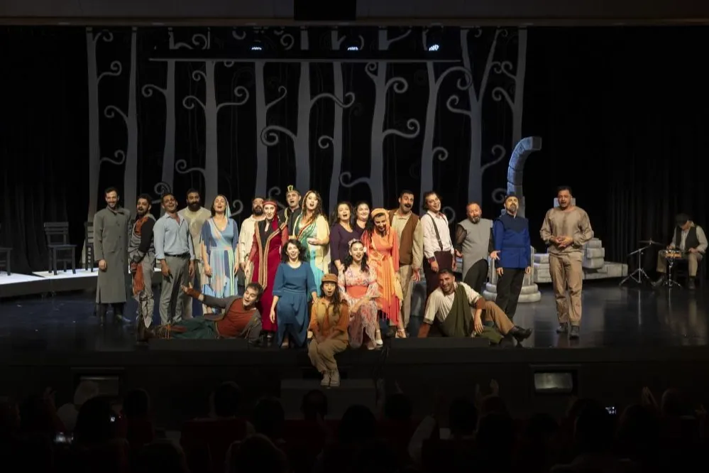 MERSİN (İGFA) - Kongre ve Sergi Sarayı’nda gerçekleştirilen prömiyerde salon tamamen doldu. Seyirciler, rüya ile gerçeğin birbirine karıştığı büyülü atmosferde unutulmaz bir gece yaşadı. Zehra Alev Tol’un dekor ve kostüm tasarımıyla göz kamaştıran oyunda; ışık tasarımını Şükrü Kırımoğlu, müzik tasarımını Cem Altun, koreografiyi Serbülent Biçer, dramaturjiyi ise Taner Çelik üstlendi. Dev bir kadroyla sahneye taşınan oyun, hem görsel hem duygusal yönüyle tam bir sanat şöleni sundu.