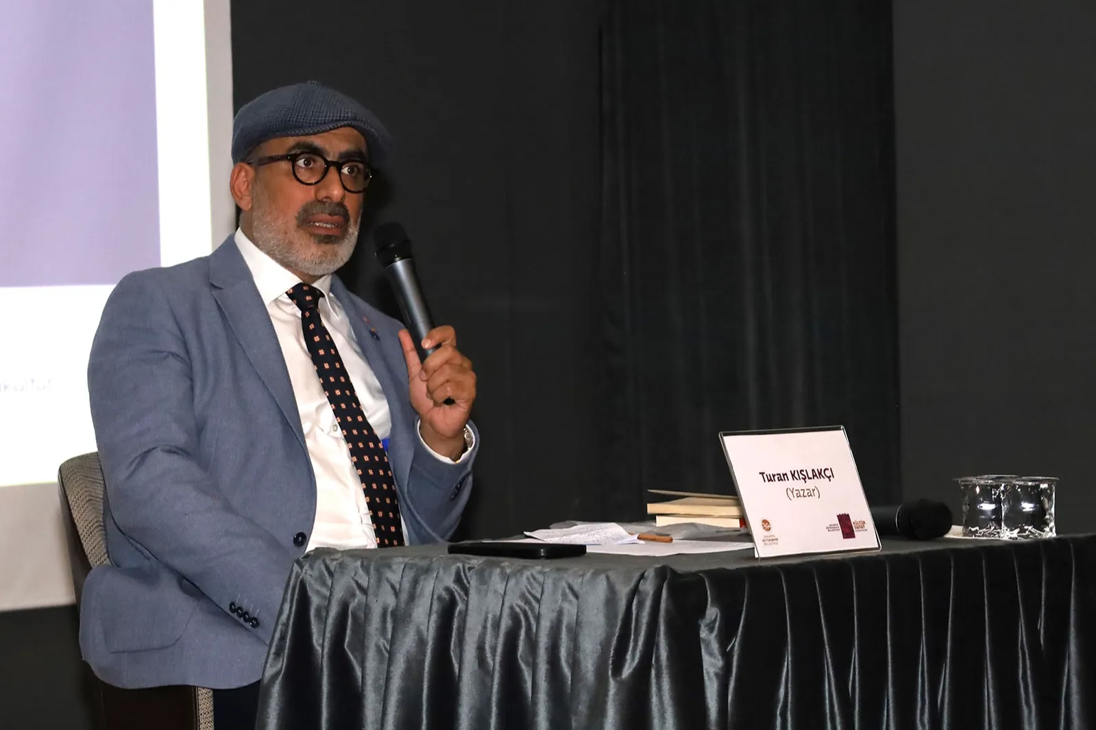 Programda konuşan Yazar Turan Kışlakçı, “Filistin denilince konuşacak çok şey var. Bizim Gazze ile imtihanımız 7 Ekim itibariyle üçüncü yılına girdi ancak 80 yıldır büyük bir işgalle karşı karşıyayız. Filistinlilerin 80 yıldır kendilerine sordukları bir soru var. Vatan nedir. Genelde tanım olarak vatan bir toprak parçası olarak anlatılır. Filistinlilere sorduğunuzda ise vatan bir göz yaşıdır” şeklinde konuştu.